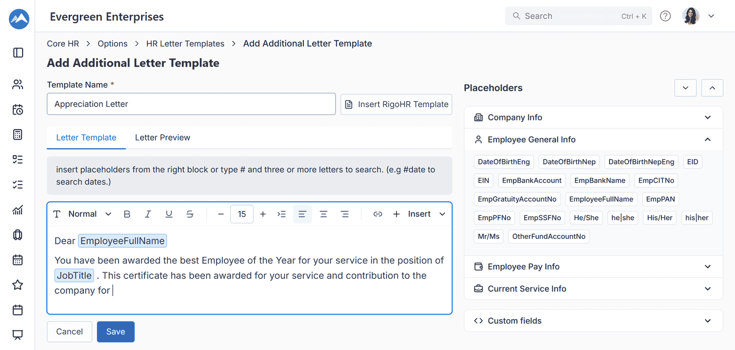 With new letter generation feature, you can generate event-based letters automatically when events happen based on your templates. In addition to event-based letters you can also design different kinds of additional letters and generate them when you need them. No more manual information searching and letter preparation. Now RigoHR does it all.
